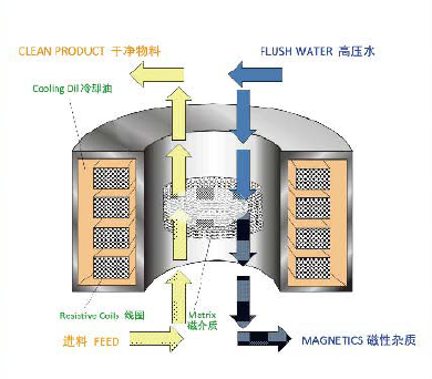 電磁漿料除鐵器是高強(qiáng)度、高梯度除鐵器,專門用于去除液體和漿料中的細(xì)小雜鐵和順磁質(zhì)顆粒。